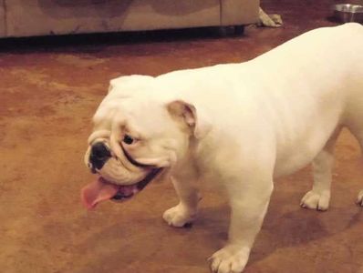 Dolly Kate is one of Shadow's babies. She spent a few months with another family, but came back to us to finish raising. She has a loving heart and is Thumper's best friend. She has shared three beautiful litters with us and our families. Dolly had her final litter in October 2021 and will live the rest of her BULLDOG LIFE just laying around on the sofa. She has been a great mama and now can be a leader for any new puppies we add.